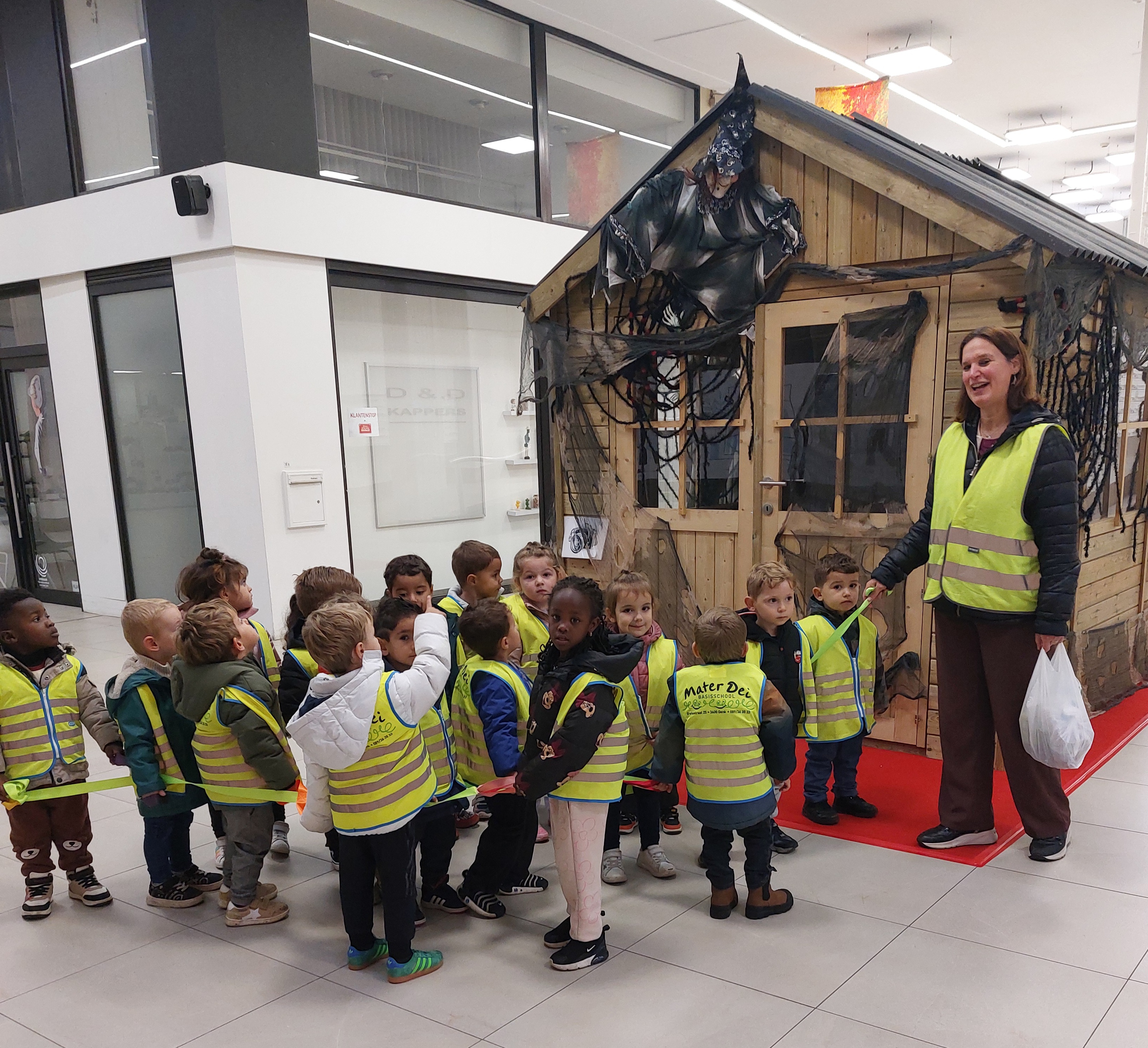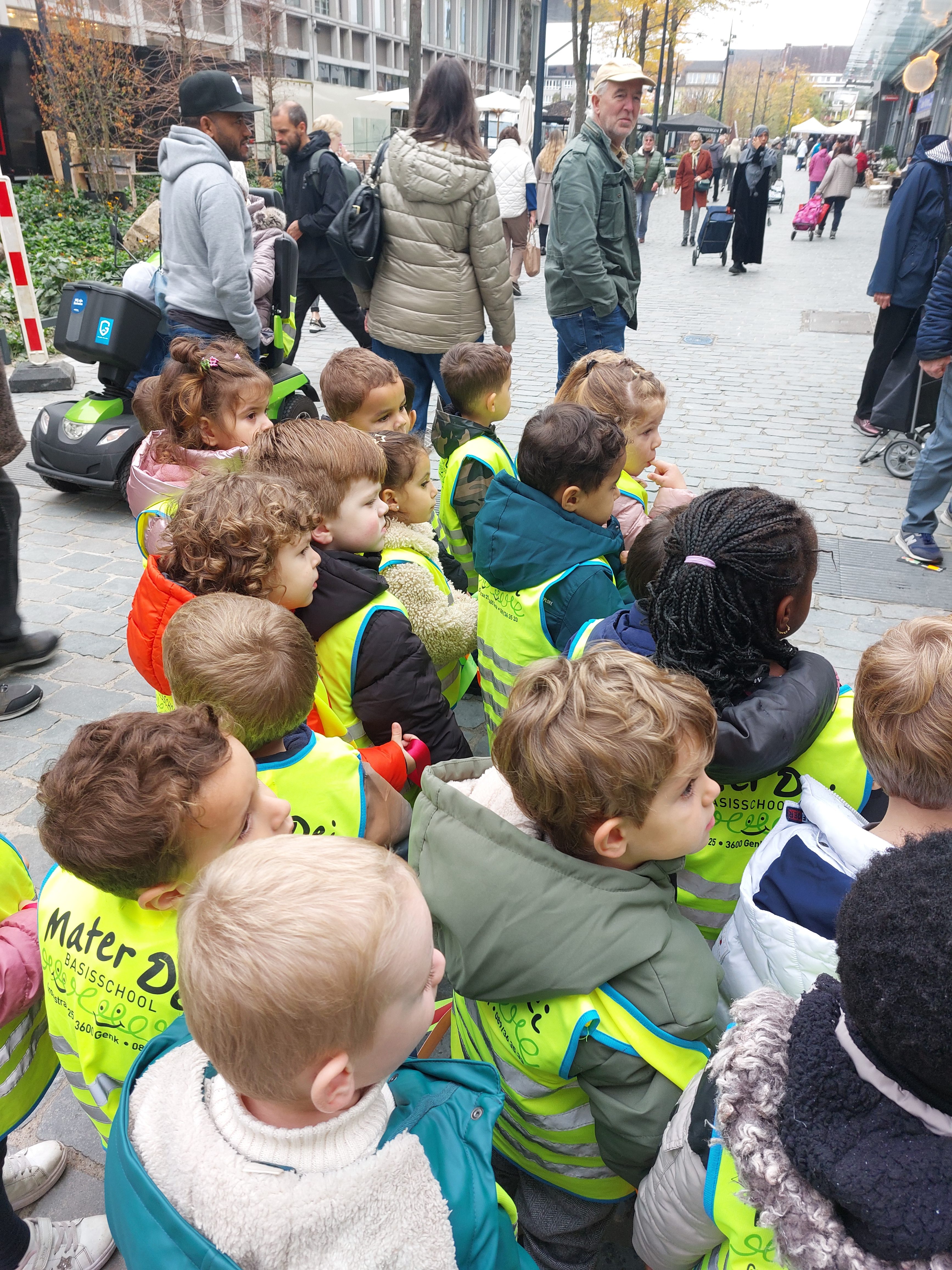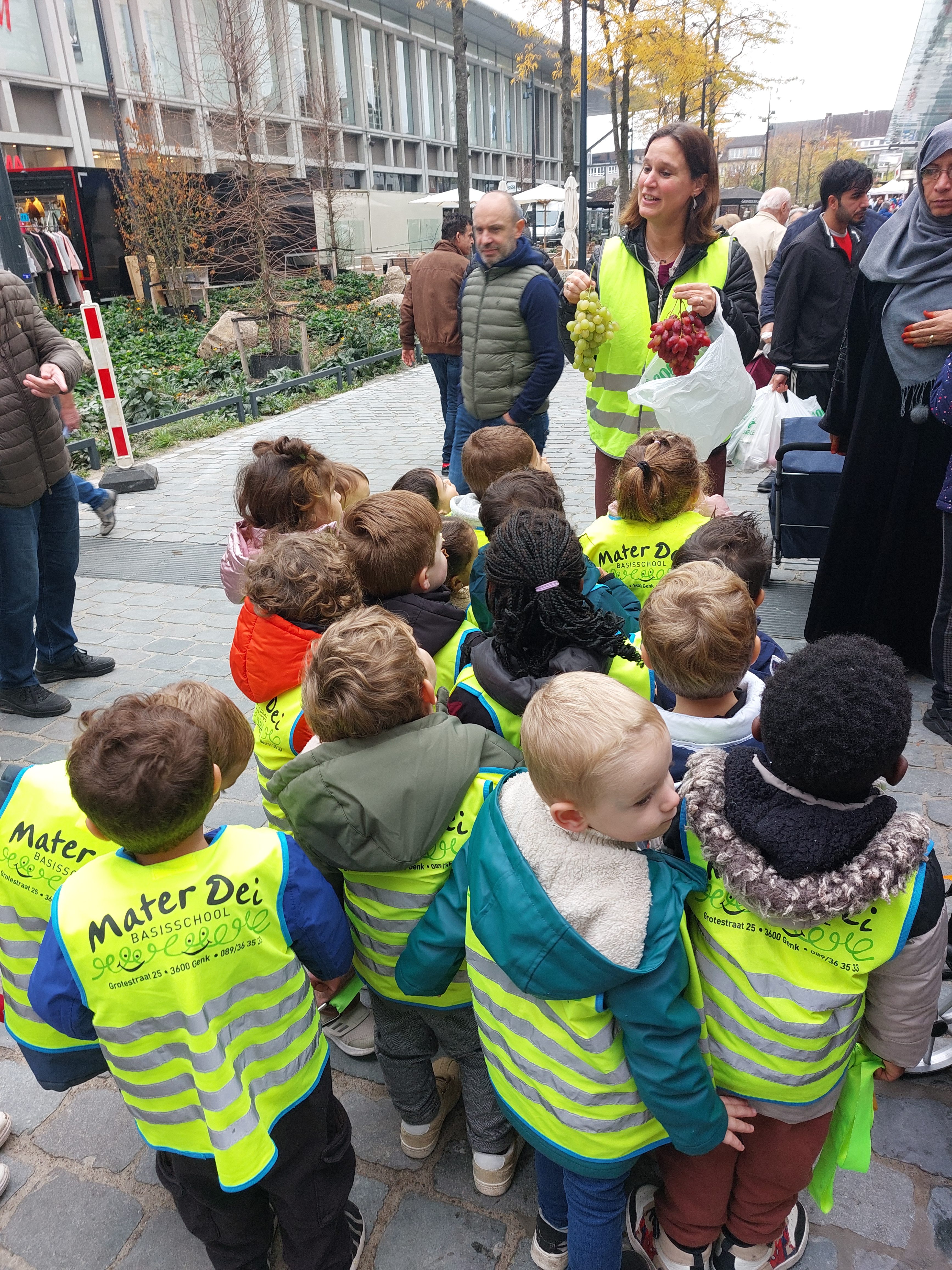 Naar de markt met de kleuters van de rode klas! We gaan naar de markt om fruit te kopen en daarna kunnen we ervan proeven in onze klas. We wandelen naar de markt. Fruit kopen op de markt. Wandelen door de Shopping. Wat een groot spinnenweb! Fruit proeven, mmm wat lekker en gezond!