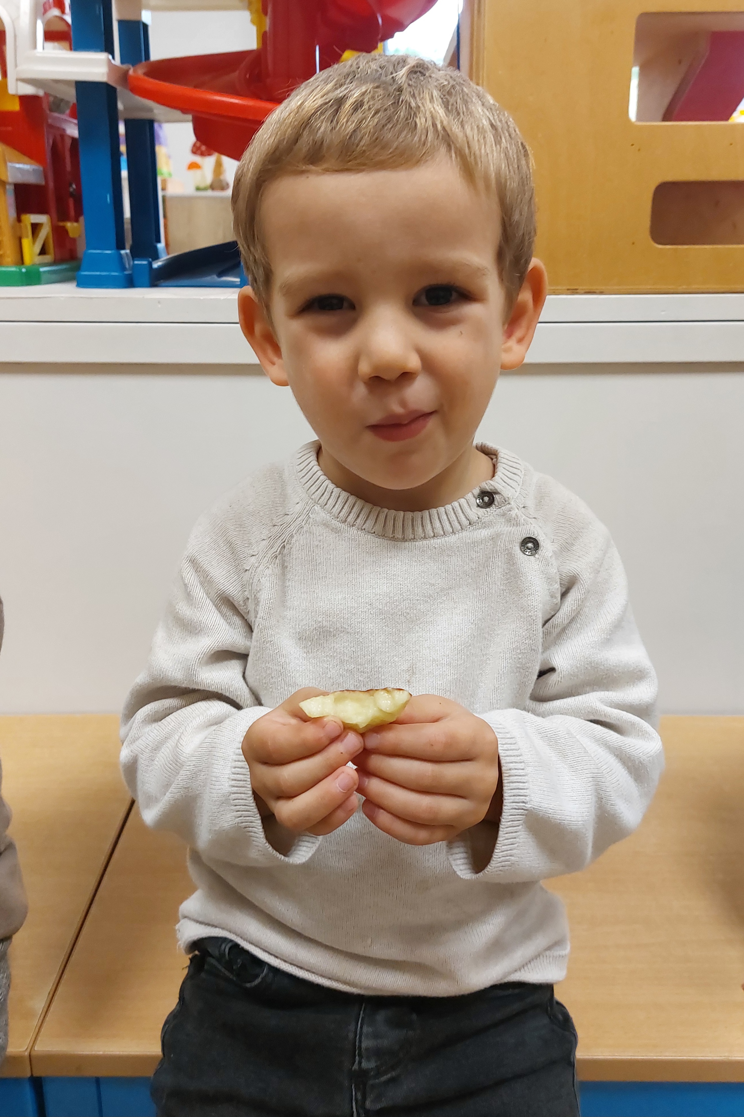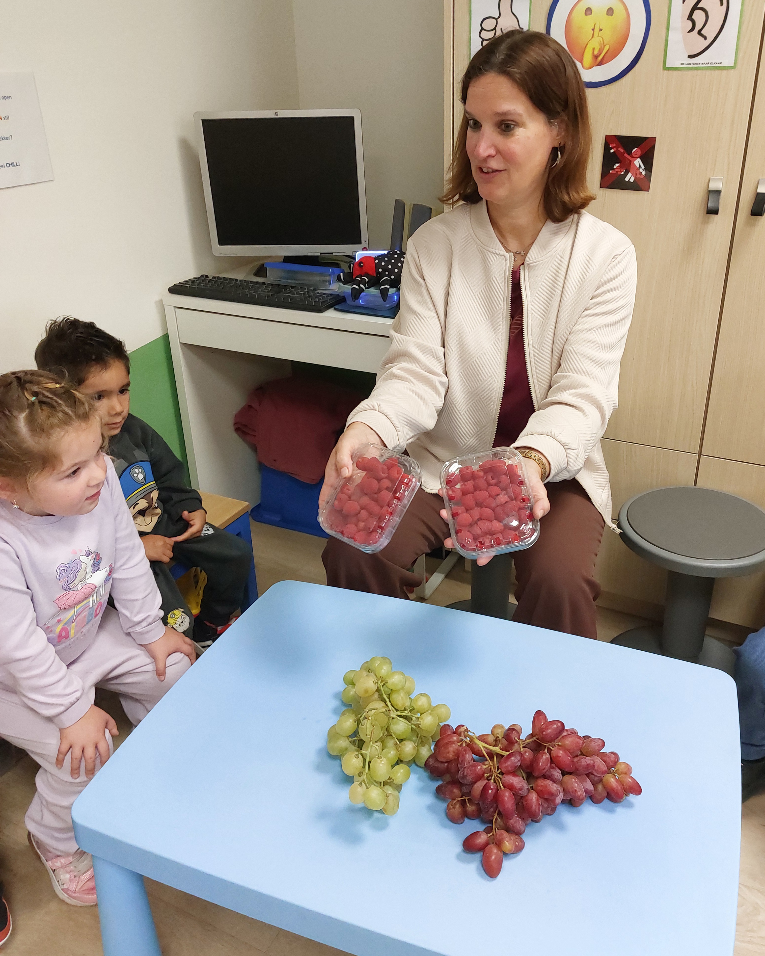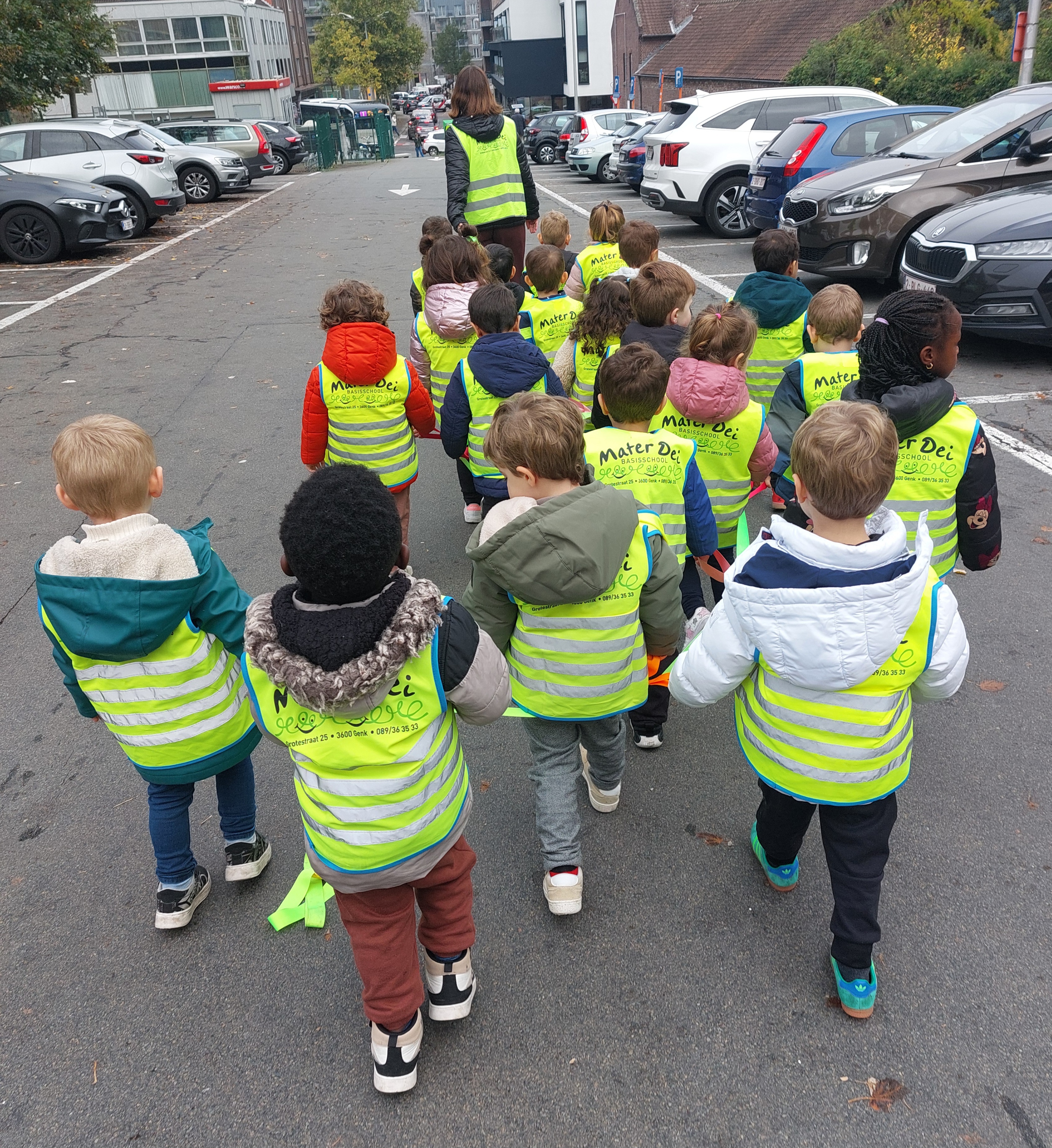 Naar de markt met de kleuters van de rode klas! We gaan naar de markt om fruit te kopen en daarna kunnen we ervan proeven in onze klas. We wandelen naar de markt. Fruit kopen op de markt. Wandelen door de Shopping. Wat een groot spinnenweb! Fruit proeven, mmm wat lekker en gezond!
