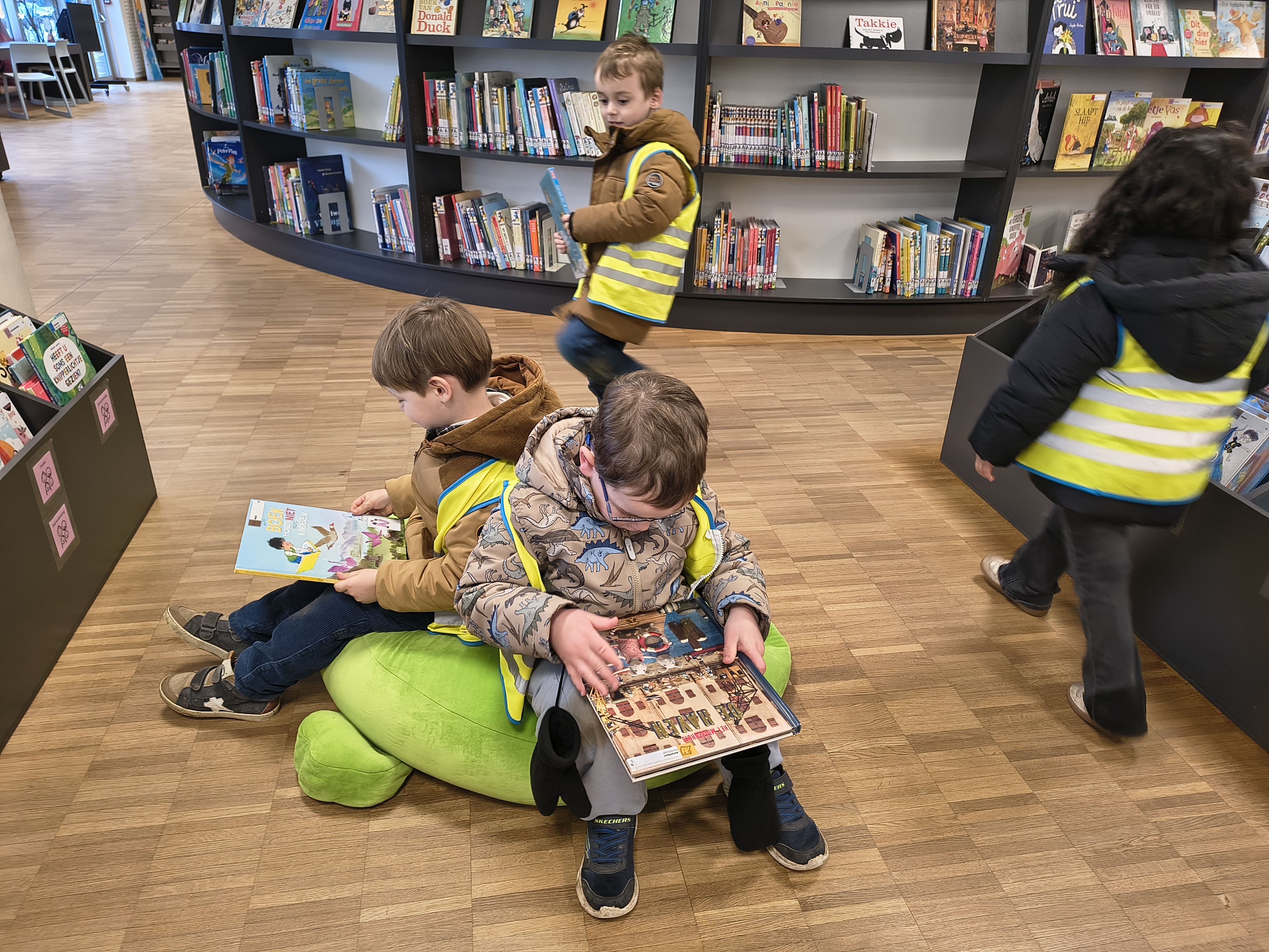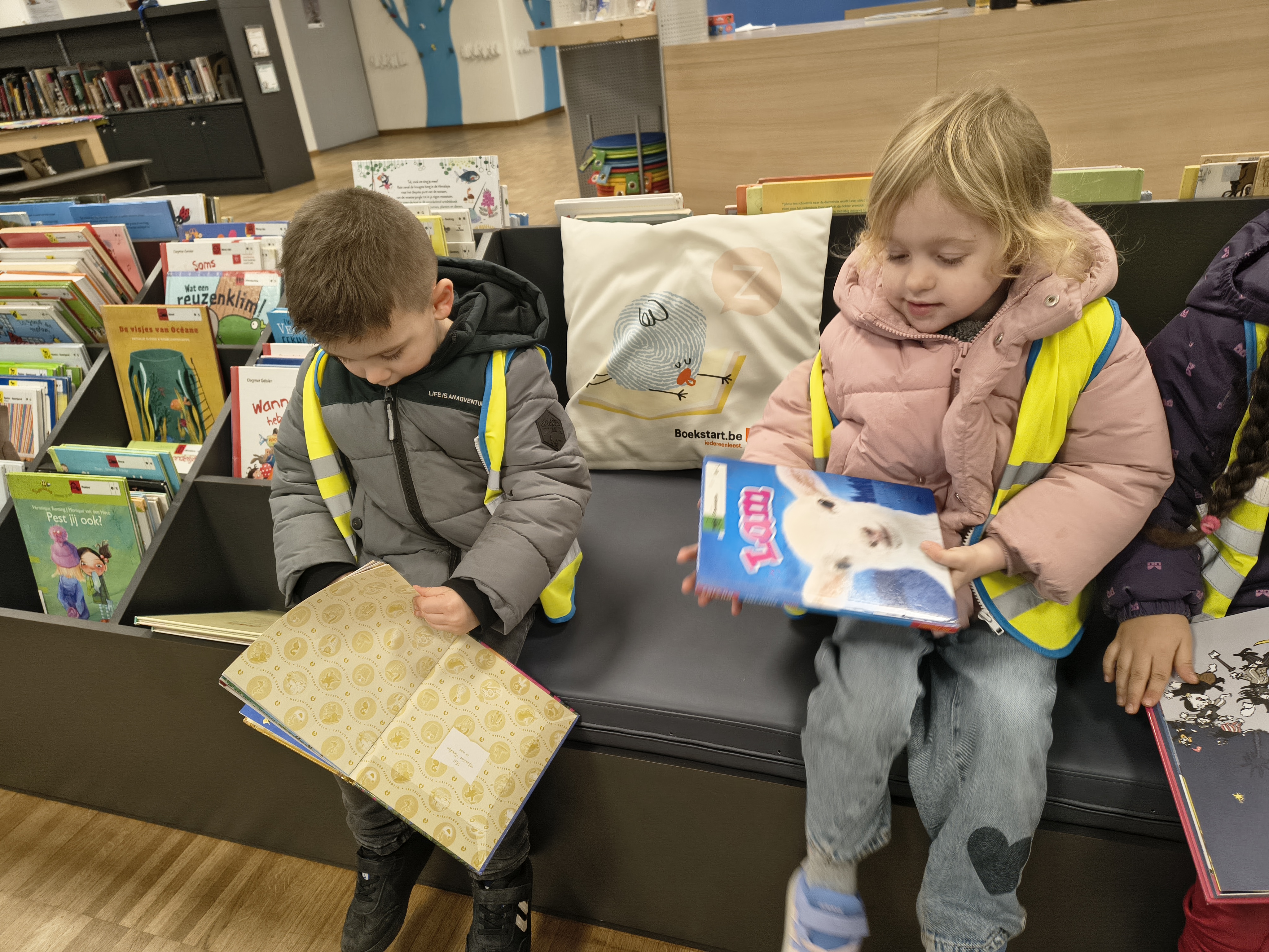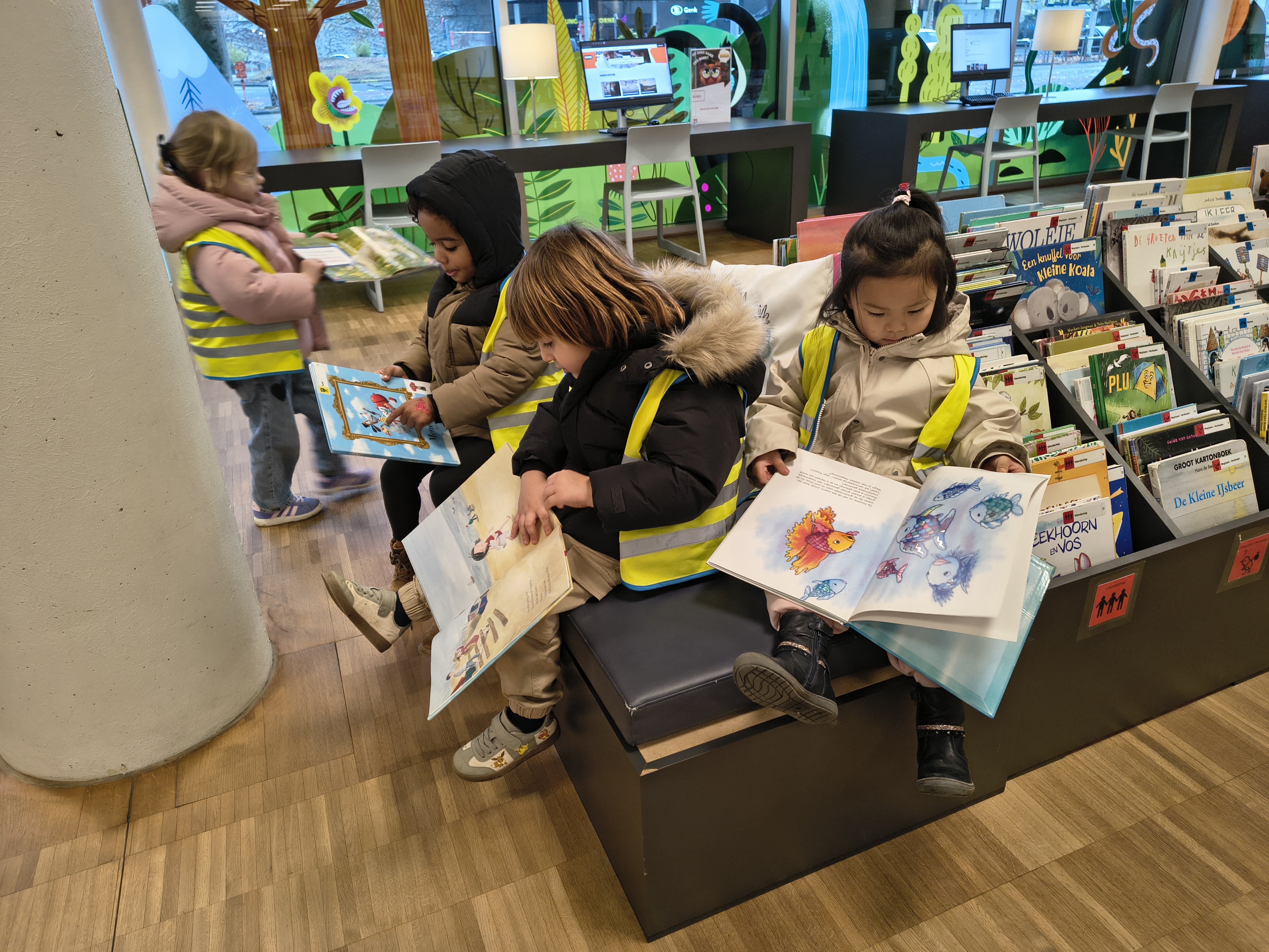 Op maandag 24 november gingen juf Elisa en juf Silvia met de kleuters naar de bibliotheek. Eerst leverden we de geleende boekjes terug in, nadien mochten we allemaal 1 boekje kiezen om in de klas te lezen.