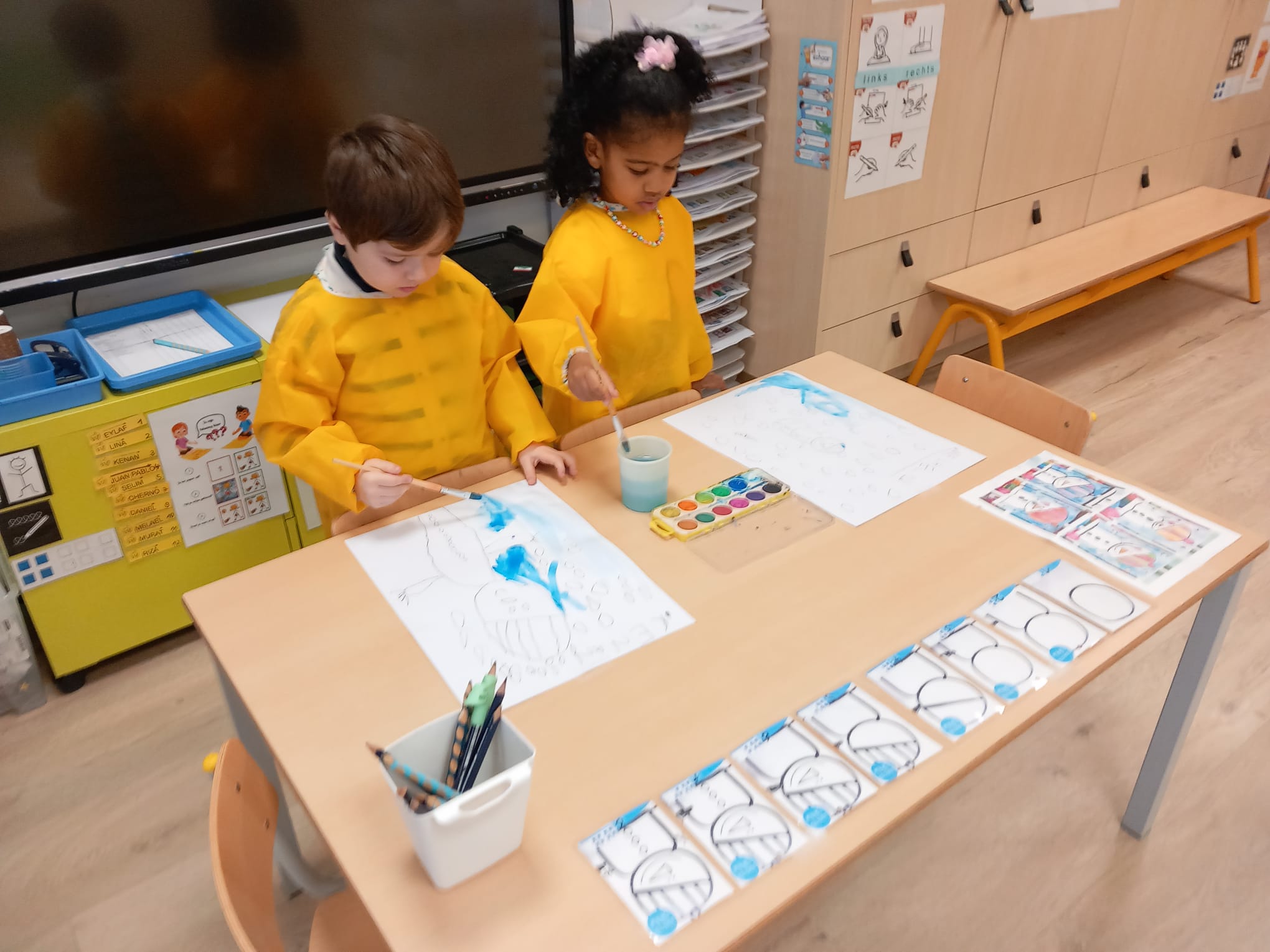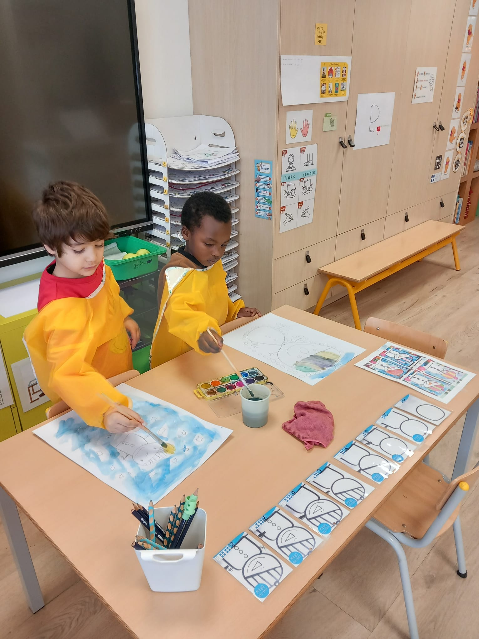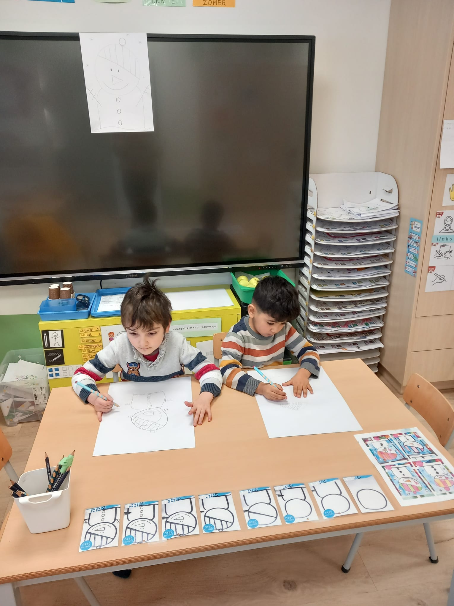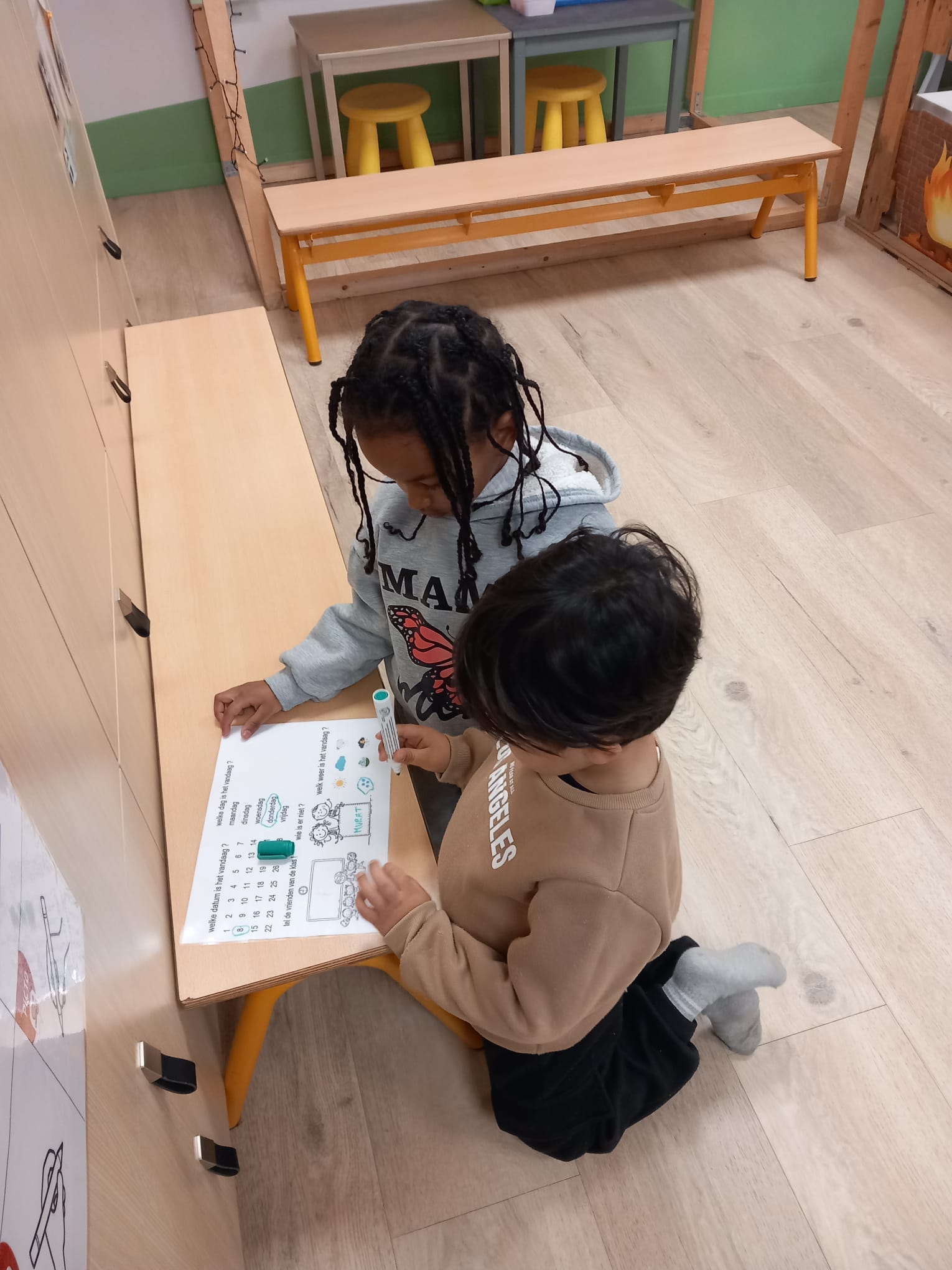 samen kijken naar het weer, de dag, wie is er in onze klas en wie niet ?
