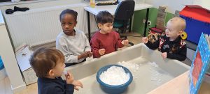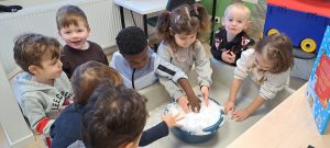 Wat is het fijn om ook in de klas de sneeuw eens te kunnen voelen, proeven en ook te kijken wat er met de sneeuw gebeurd als het het in een warmere ruimte staat.