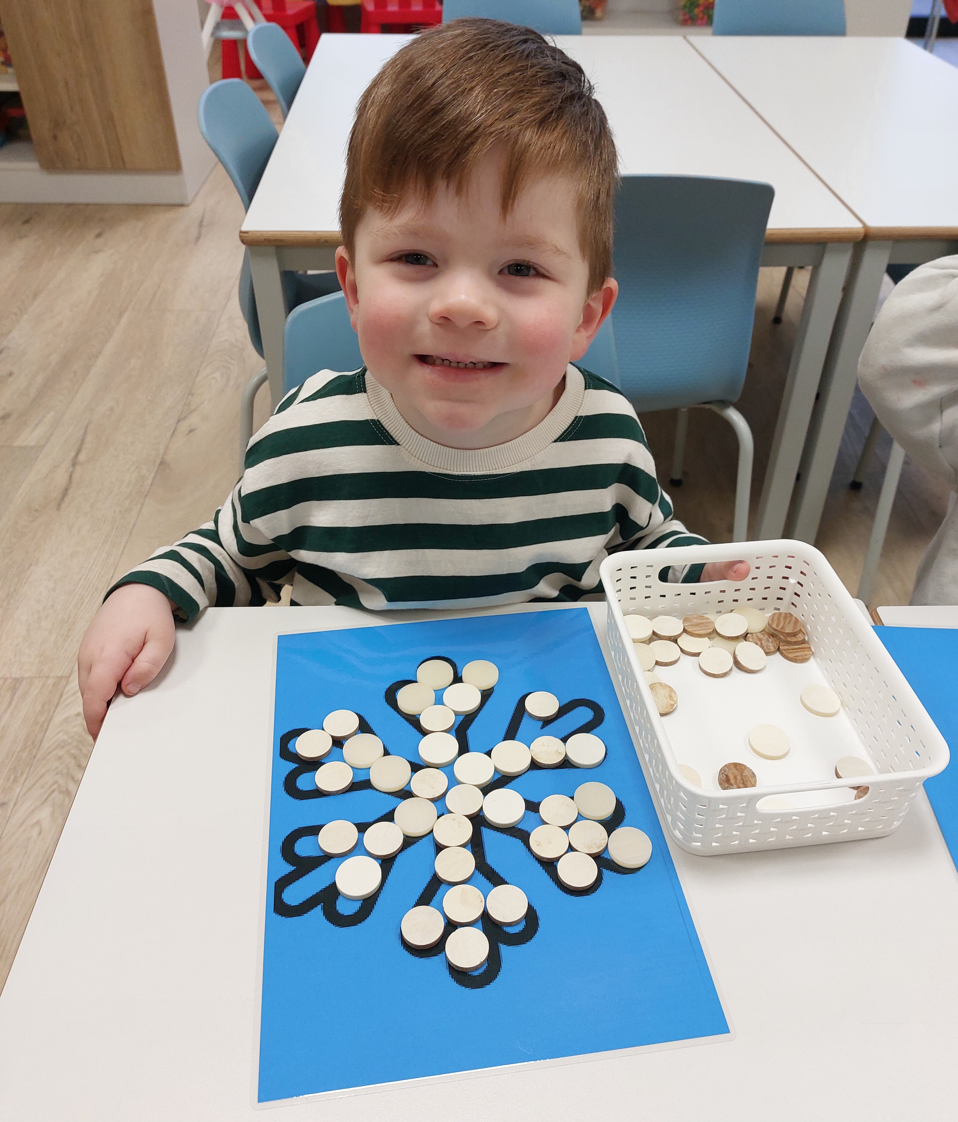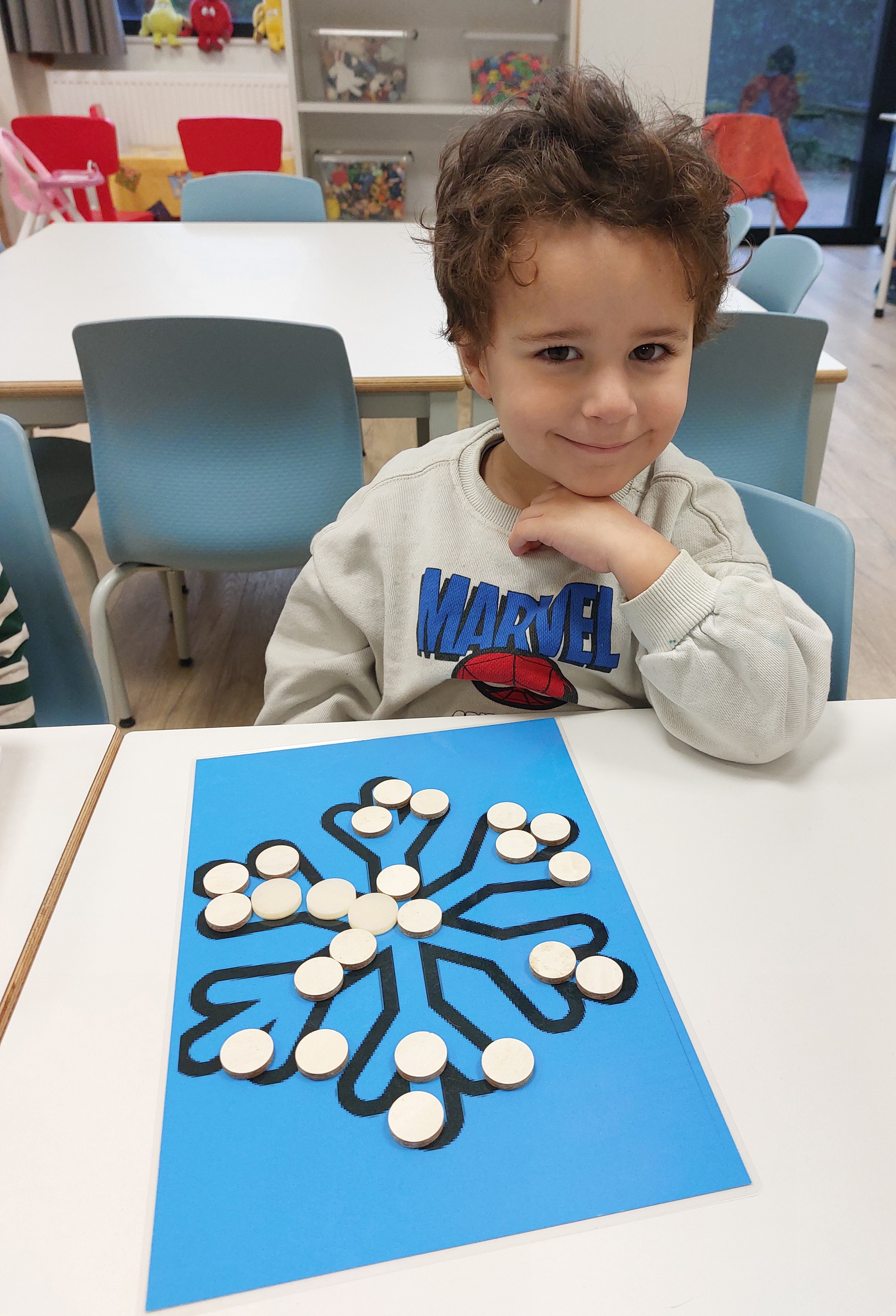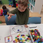 Met grote hama parels konden we mooie drakenfiguurtjes vullen. Dit is een goede fijn motorische oefening.
