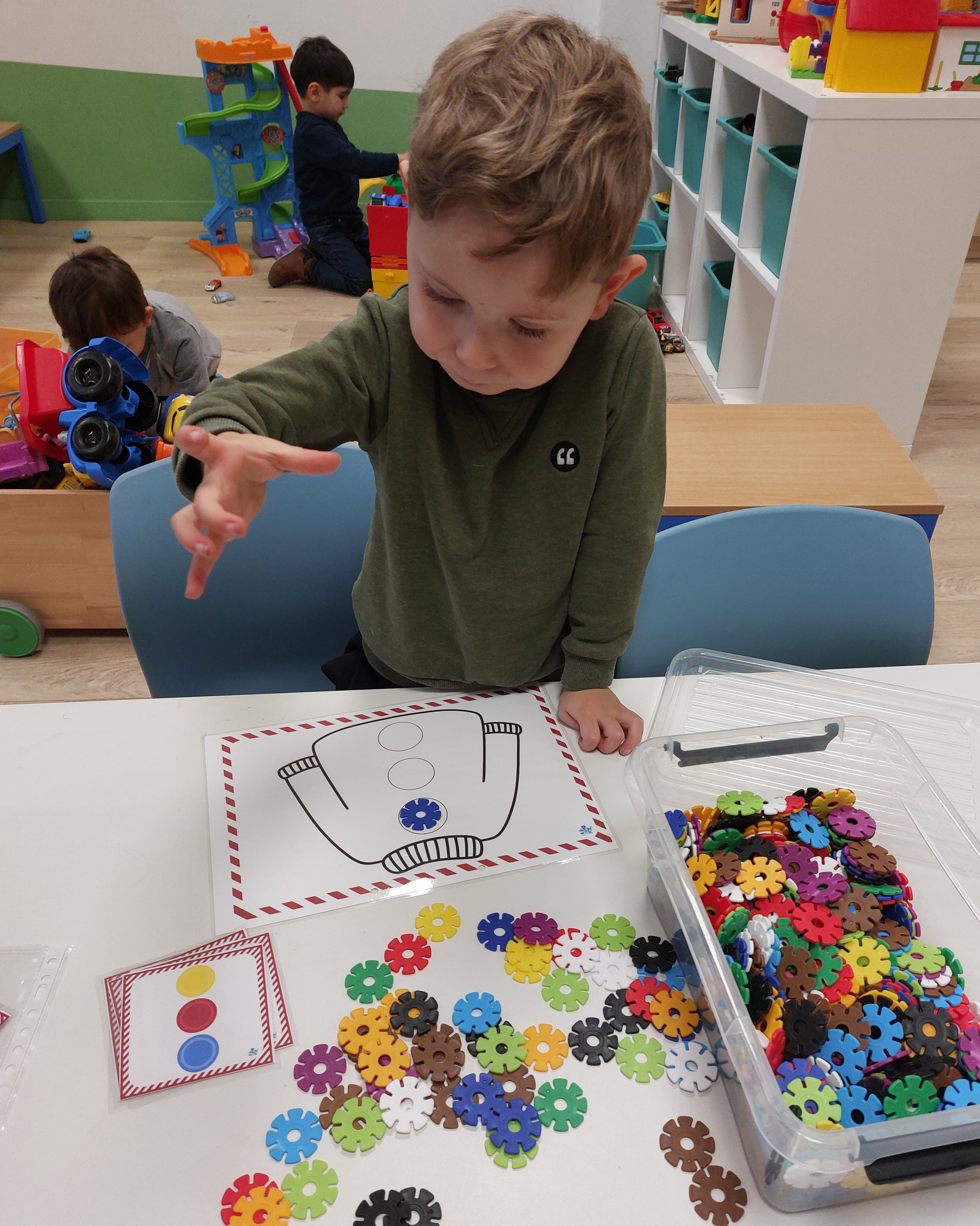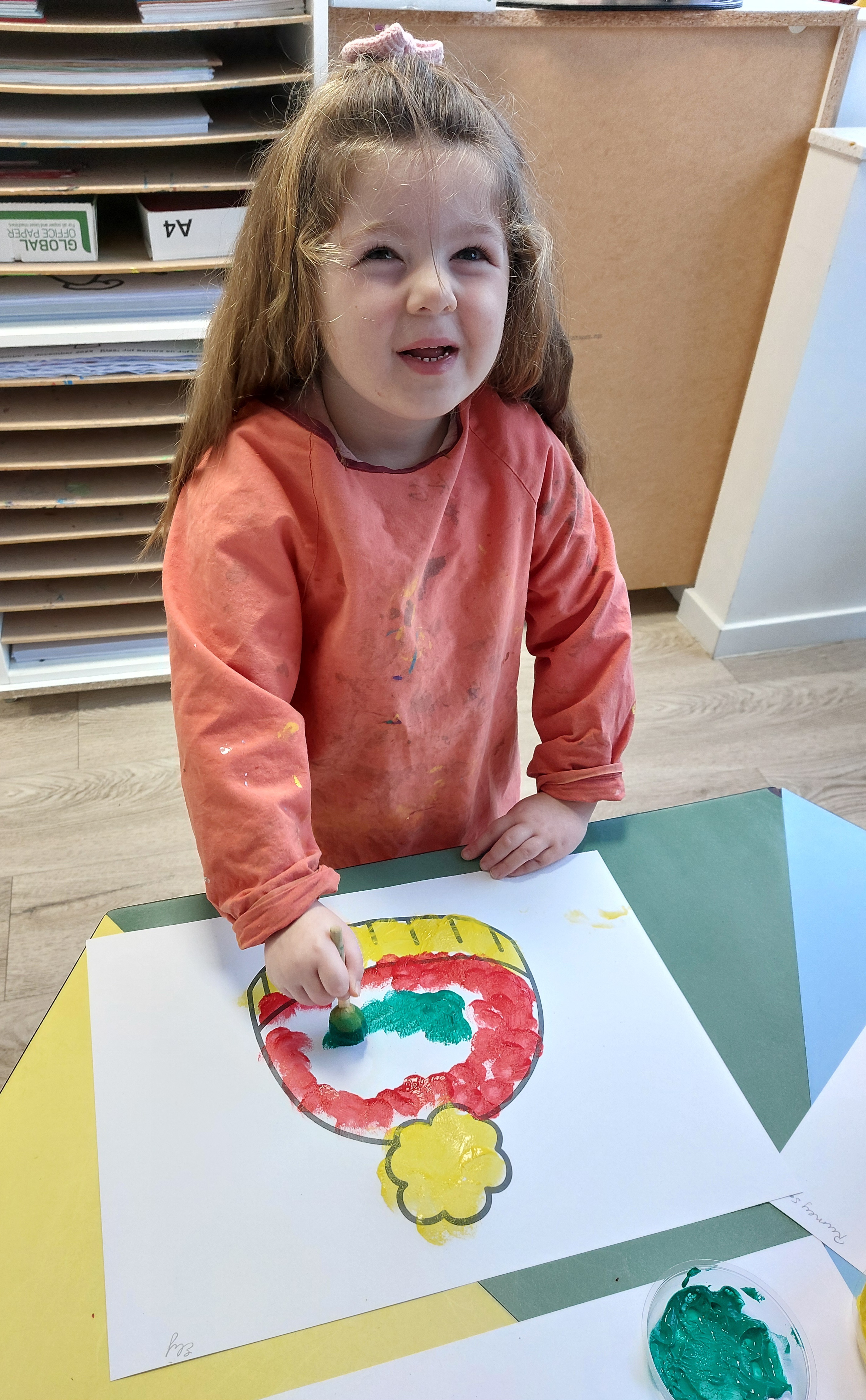We werkten in ons klasje rond het thema “kleuren”. We leerden al spelenderwijze de verschillende kleuren identificeren en benoemen.