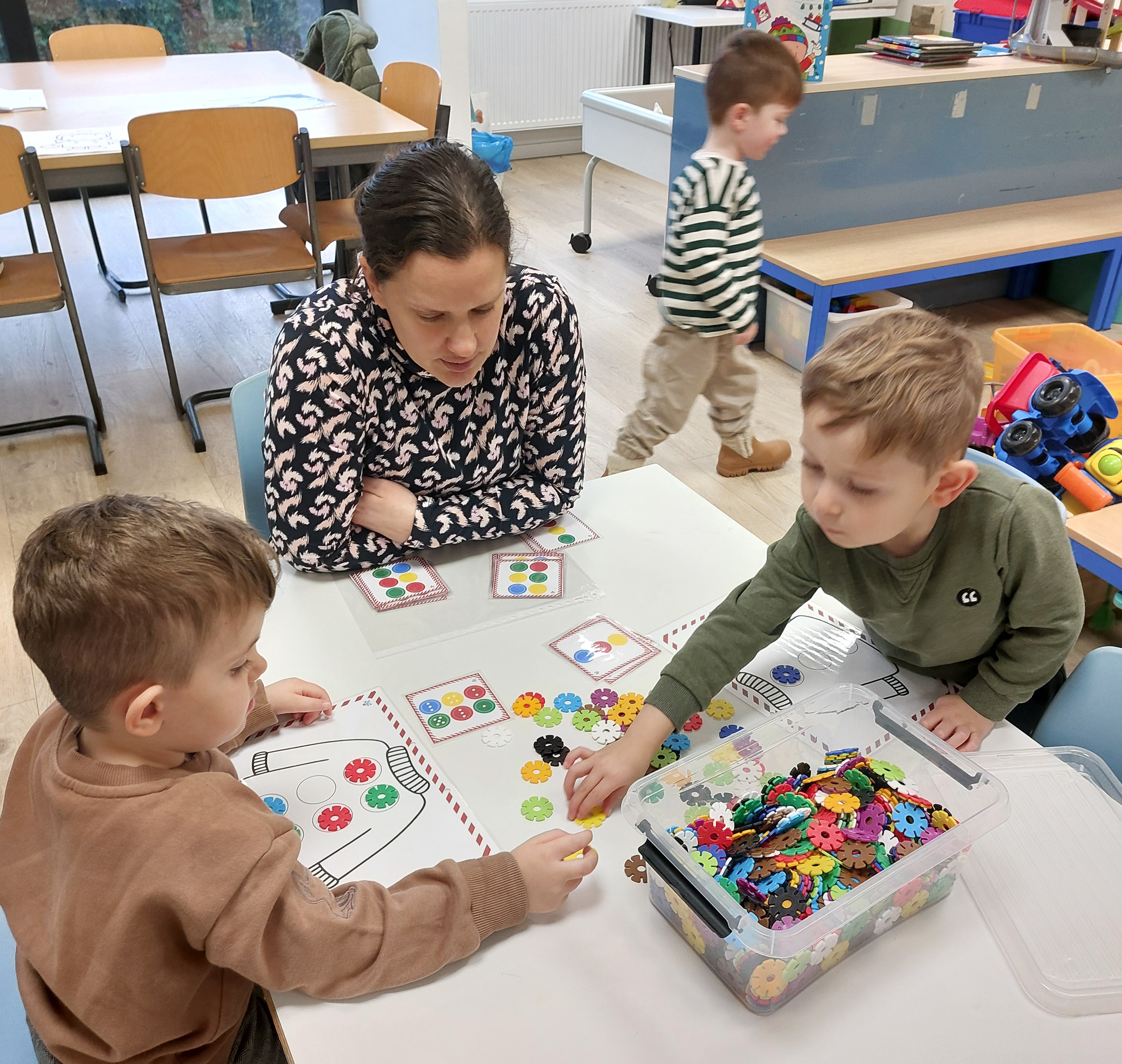 In de klas hadden we een leuke verteltafel waar we ook de verhalen van het kleine witte visje konden naspelen.